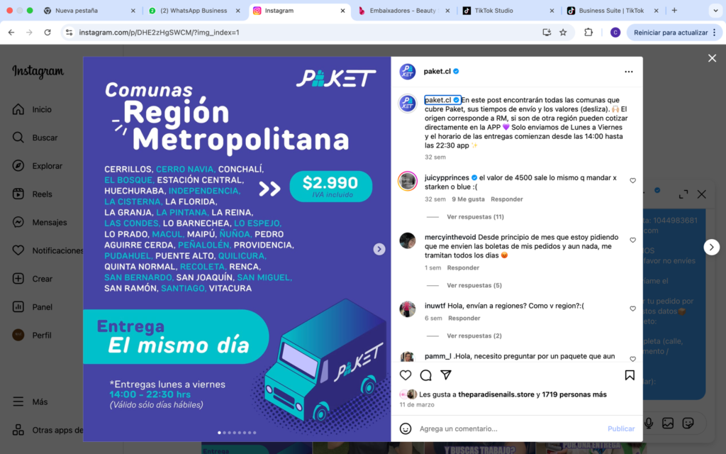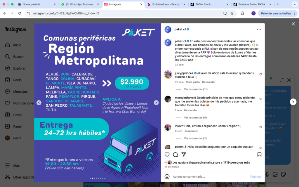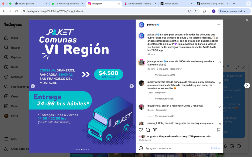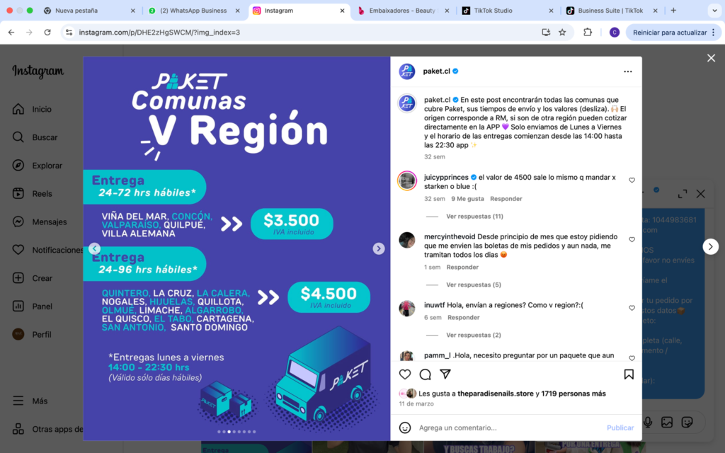 Respuesta: Cuéntame de qué ciudad, porque en la V y VI región tenemos despacho con Paket: